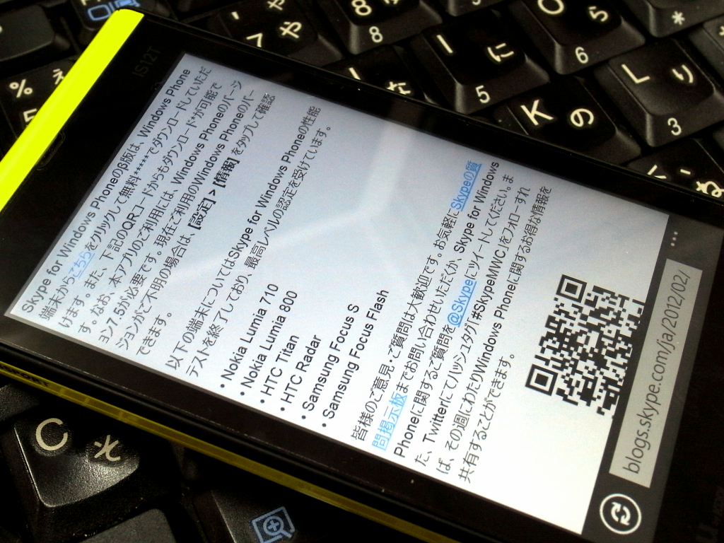 Skype for Windows Phone β版を au IS12Tにインストールして使ってみました はコメントを受け付けていません