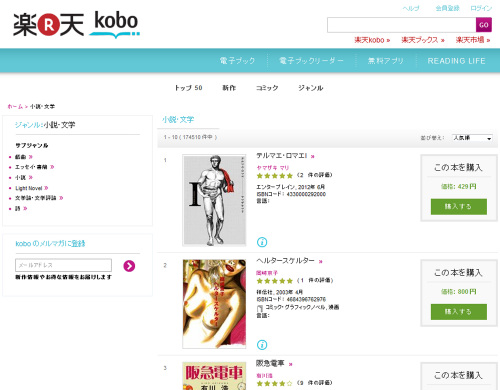 楽天 kobo がオープン