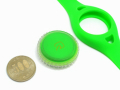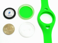 e-money band(イーマネーバンド)の中枢にあたる Edy(エディ)機能のパーツは、シリコンバンドから簡単に取り外せます。さらにこのパーツの中に Edy(エディ)トークンと黒いコイン状のプラスチックパーツが入ってます。この黒いコイン状のものが Edy(エディ)そのものです。