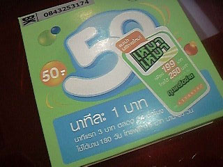 ガンガン通話通信するならAISのプリペイドカード。50バーツだが、さらに50バーツを足してGPRS6時間パックにした。アクセスポイント名はinternet、ユーザー名ais、パスワードais。バンコクは3Gではないが、Softbankのローミングよりスピードは早い。