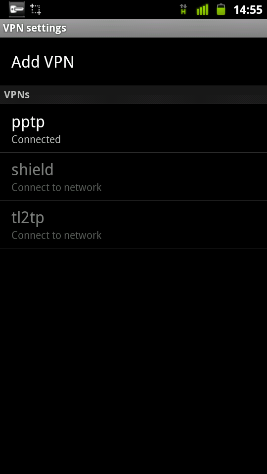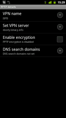 あとは、VPN settingsからPPTPの設定を追加します。DNSやencryptionは設定不要です。