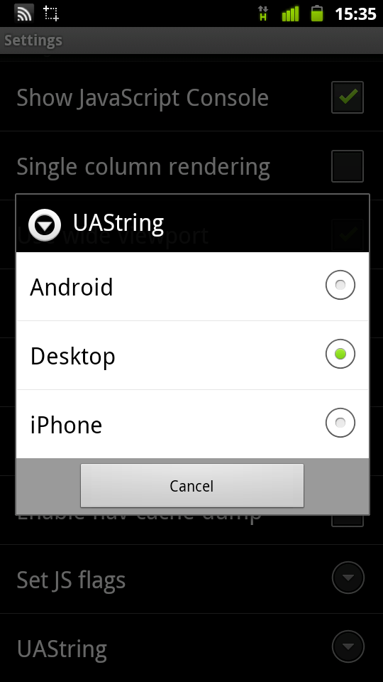 ※「about:debug」はATRIXとT-01Cで確認しました。すべてのデバイスで使えるかどうかは不明です。昔のAndroidって、切り替えができたような木がしますがね?