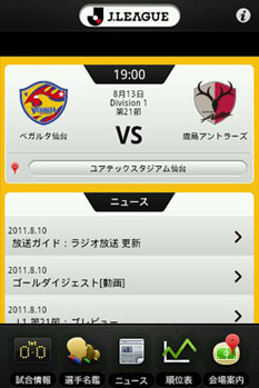 エルゴラッソの販売元が提供している日本の野球とサッカーの情報配信アプリです。J1・J2に対応しています。