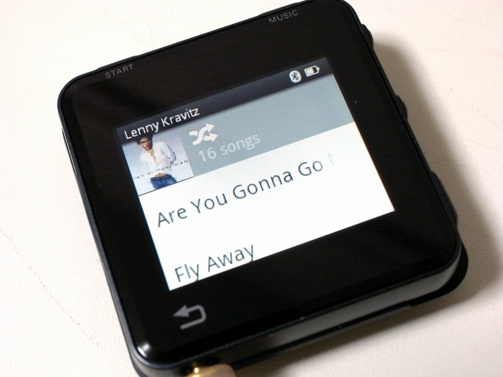 上面には、Workoutの STARTボタン、MUSIC(再生/停止)ボタン。底面には、3.5mmイヤホンジャック。