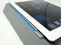こちらは、 iPad2用。 重さ約 40gと極薄超軽量ケースを実現。Smart Coverマグネット装着部分は、ケースの厚みが最薄 0.35mmまで薄くなっていて、ケースの上からそのまま Smart Cover を装着可能。