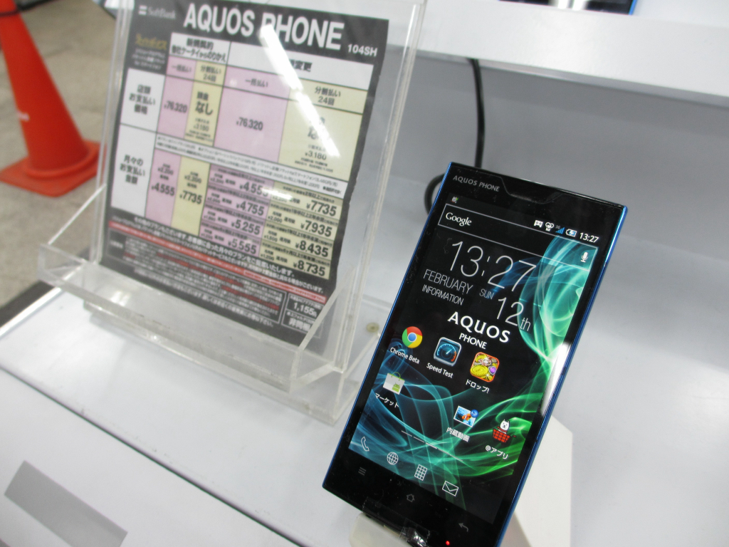たまたま秋葉原ヨドバシに寄ったところ、AQUOS PHONE 104SHのタッチアンドトライをやっていたので、ちょろっと触ってきました。