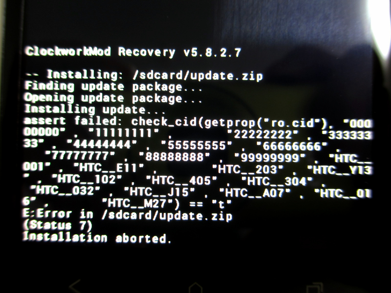 次に試したのが、アップデータファイルをClockworkmod Touch Recoveryから適用してみること。アップデータファイルは、「後でインストールする」を選んで、/sdcard/download から、/sdcad 直下などにコピーすると残ります。