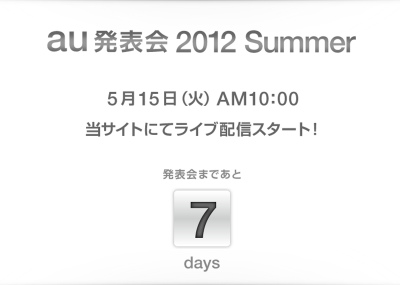 auは、2012夏モデルの新商品・新サービスの発表会を 5/15(火)10:00より開催することを発表。