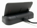 HTC One X の充電とPCとの接続が可能な横置きタイプのクレードル。