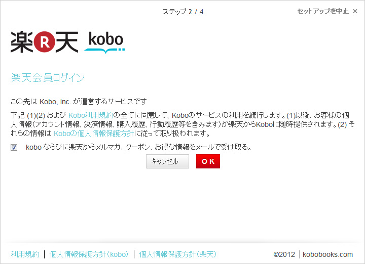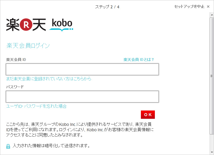 rakuten.kobosetup.comから、各プラットフォームごとのアプリをダウンロードして、インストールします。