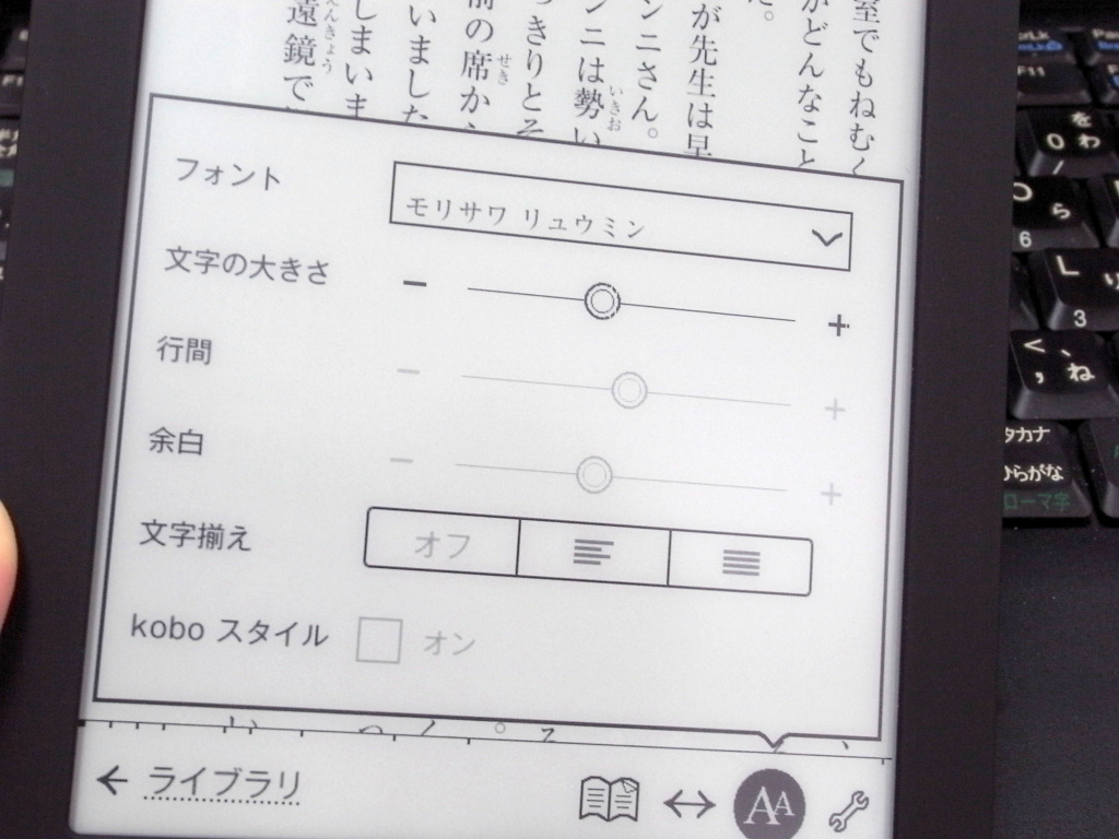 最初の表示があまりにもあれなので、設定でフォントを「モリサワ リュウミン」に変更。