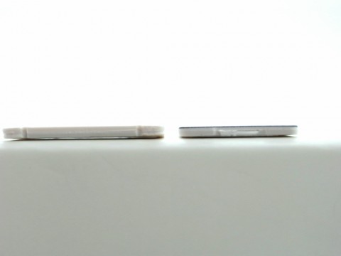 厚みもnanoの方が薄くなってます。iPhone4Sの microSIM(左:0.85mm)と iPhone5の nanoSIM(右:0.74mm)※数値は、手元のノギスで計ったものです。