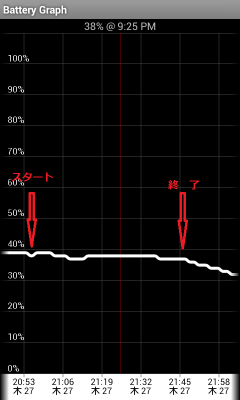 飛ばさず、自分なりに快適なスピードで走行した場合の、充電状況です。