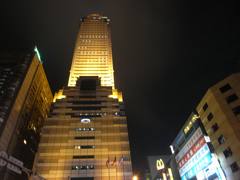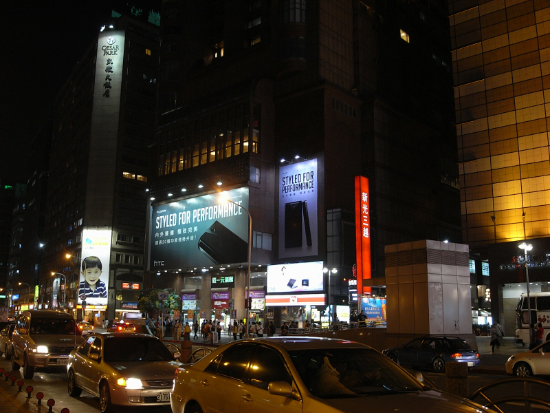 とりあえず現地のプリペイドSIMを調達ということで、山根さんちの記事を頼りに、ホテル到着後、すぐにMRT台北駅前に移動しました。駅前には、新光三越のノッポビルがででーんとそそり立っていて、その両脇にK-MALLとNOVAという電脳関連のお店が集まったビルがあります。写真は、左から、K-MALL、三越ノッポ、NOVA。