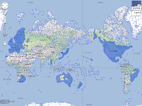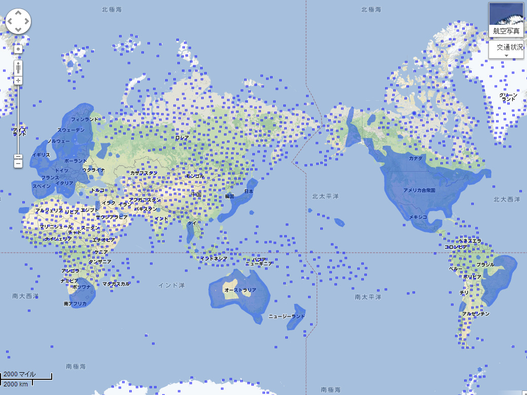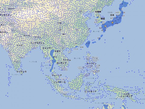 もう少し拡大してアジア圏を見てみると、ストリートビューの恩恵を受けているのは、日本、台湾、香港、タイ、韓国の一部くらいですね。
