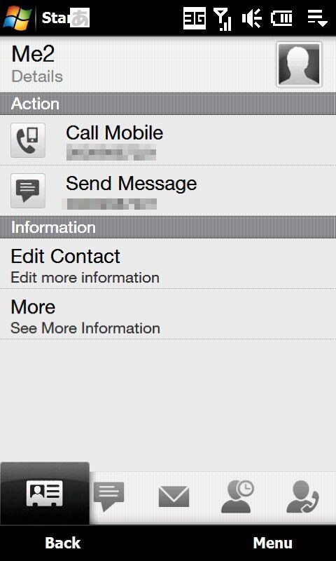 Peopleはよく使う人を登録しておき、手軽にメール電話をかけたりメールを送信したりすることが出来る。