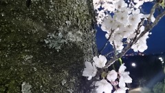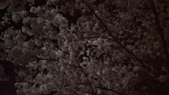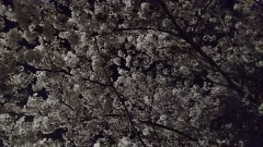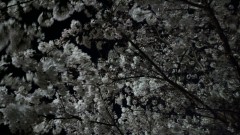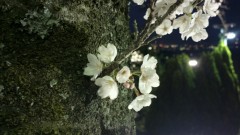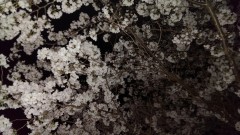 続いて、左にちょっと移動してライトアップされていない寒そうにしている桜を撮ってみました。近くのレストランの照明のみと厳しい状況で、また風が強く花びらは常に揺れている状況です。