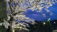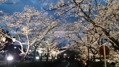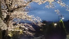 枚方カントリークラブでは夜間も桜がライトアップされていて、ゴルフをしない人にも開放されています。片道10キロと程よい距離だったので、デバイスを5台担いで自転車で出掛けてみました。ゴルフ場なので、山の中腹にあり夜景と桜が同時に楽しめます。