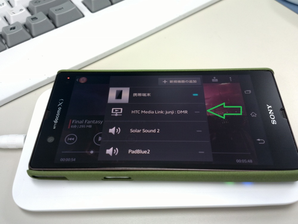 アプリからローカルコンテンツを選び、右上角のテレビアイコンをタップすれば出力先にHTC Media Linkが表示されます。起動してすぐには表示されないことが多いので、暫らく待ってみましょう。