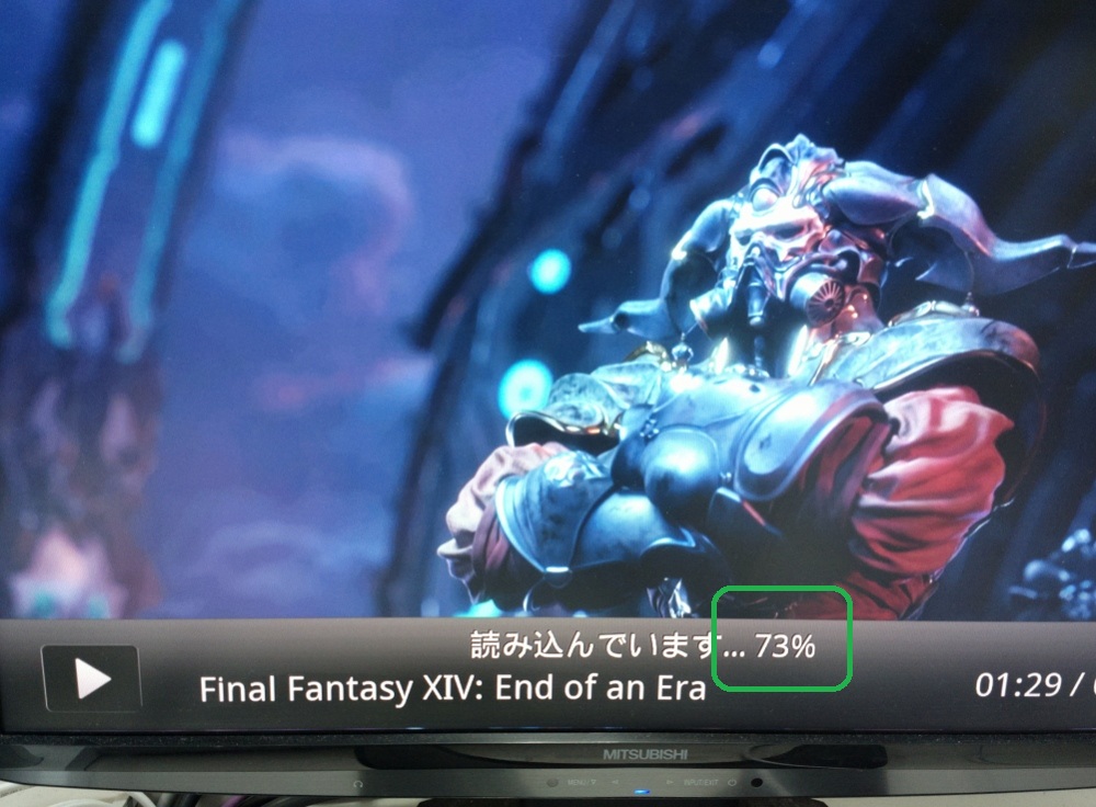 この時、動画がディスプレー側に表示されています。プリインストールされている動画を再生しましたが、これが結構遅い。。。。