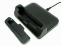 GALAXY Note II 本体と予備バッテリを同時に充電可能なクレードル。さらに付属のアタッチメントを外すとケースを付けたまま本体をクレードルに装着可能。