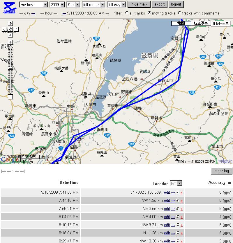 どうやらこのアプリはGPSのログを記録してくれるのはもちろんだが、正確さというより長時間の記録を目的としているようで、Logの間隔も2分、5分、15分からとなっている。また、動いていない場合はLogには残さない仕様。適時ログをアップロードしてくれるのですが、夜寝ている間はLogには残らない→アップロードしない→省電力ということかな。また一度起動してしまえばあとはほっとくだけで超簡単、電源が入っている限り延々とLogを記録しデータをアップロードしつづける。。。正確な位置情報ならMy Tracksですが、あなたのライフワークをというかあなたの動線を記録し続けるアプリですね。