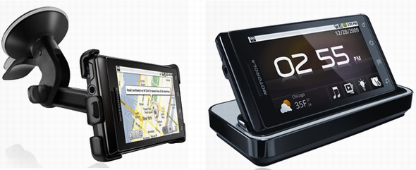 ところで、このDROIDは純正アクセサリーとしてマルチメディアステーションと呼ばれるクレードルが用意されています。microUSB端子しかないため、クレードルにmicroUSBのオスがにょっきと出ていて、ここにDROIDを突き差す感じなのでしょう。これは、どうなんでしょ?