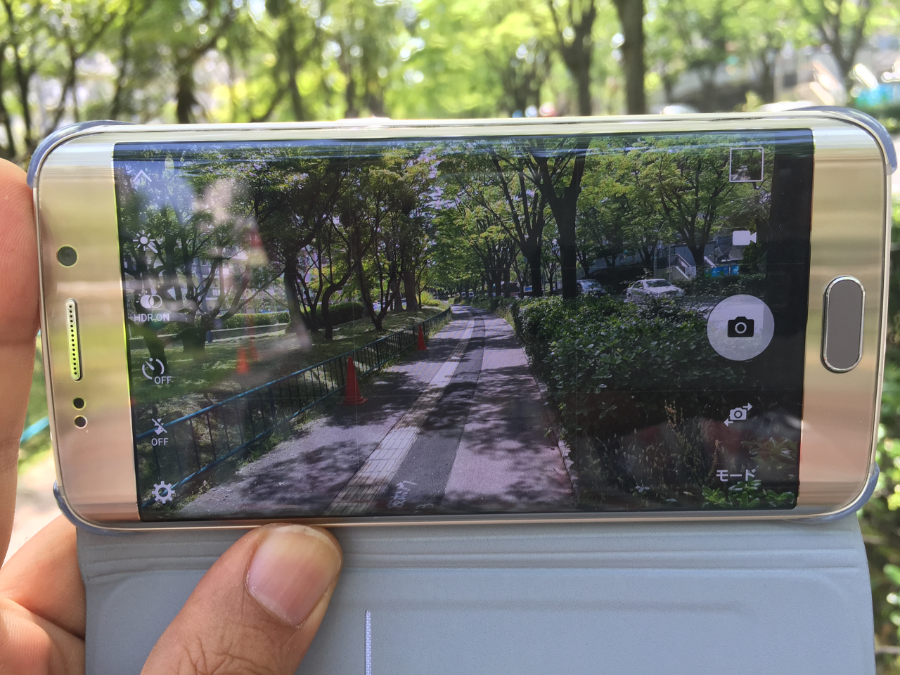 こちらは、Galaxy S6 edgeのHDR ONとOFFのディスプレーをiPhone 6 plusのHDRで撮影(ややこしい)したものです。撮れ具合がモニターできるのは、当たり前と言えば当たり前なんですが、これは分かりやすいですね。