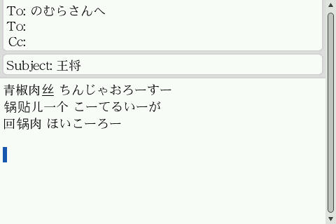 そこで… にやにやしながらBlackberryとPreを取り出し、台湾から来た中国語メールを見せてあげると、まーびっくりすること1万回。彼には相当衝撃だったらしく、以降質問攻めでした。