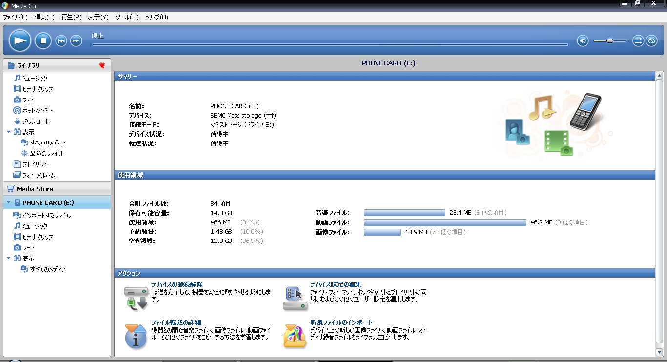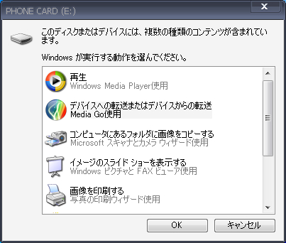XperiaがPCにマウント(認識)されると、「PHONE CARD」というドライブとして認識されるので、Media Goを起動します。