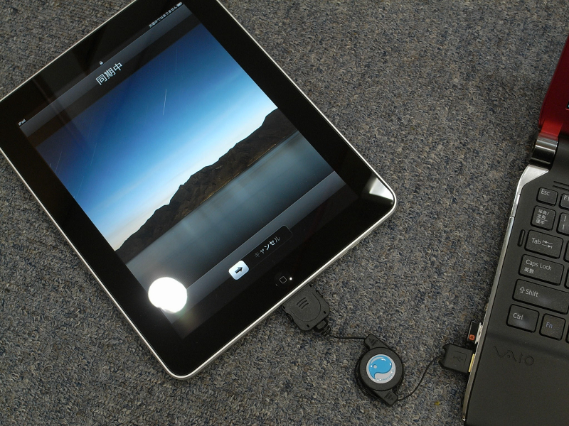 VAIO と ポケットシンク iPhone / iPod を使って同期中。