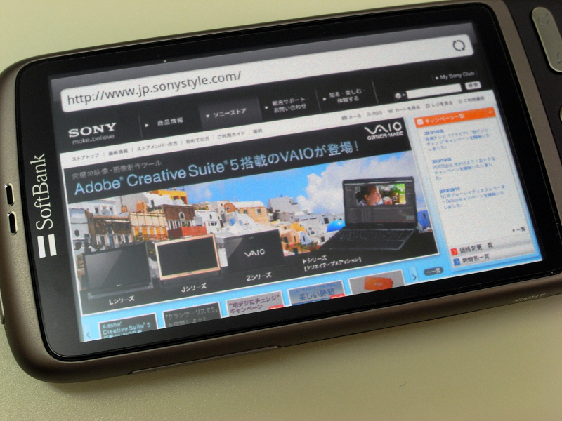 また、Flash Player 10.1対応になったので、FLASHを使ったWEBページも表示可能になりましたね。