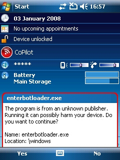 アンロックするため、PCとOrbit2を接続。WMDCの画像は早くもOrbit2のものになってます。ツールでのアンロックは画面の指示にしたがって、ボタンをクリックしてくだけ。