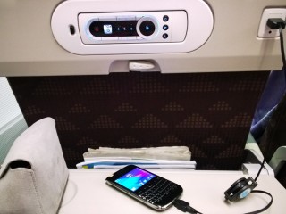 もちろん、エコノミーしか乗りませんが、先日の大韓航空の機材だとちゃーんとUSBの充電ポートがついておりました。空港への移動や搭乗待ちでバッテリーをがんがん使ってしまった人には、こんなポートが用意されていたら助かりますよね。
