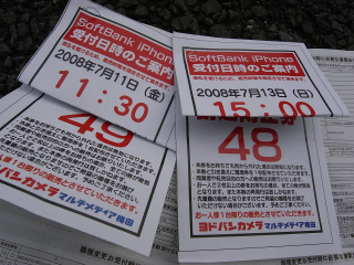 ただいま朝8時。はじめての行列体験は、なかなか大変でしたが、まもなく終了!すでに時間指定の券はもらって、あとは8時30分の機種選択券をもらうのみ。1台は今日ゲットだが、もう一台は日曜日ゲットすることに。