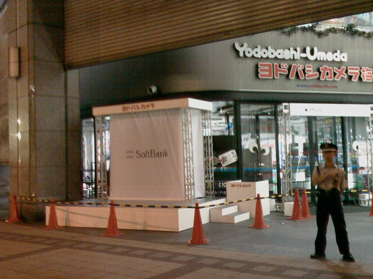 そうです、iPhone3Gをゲットするための徹夜組の状況ですが、テレビ局や新聞社も帰り、現在150人ほどがヨドバシの裏側の薄暗い駐車場スペースで時間を潰しています。すでに3分の一ぐらいの方は夢の中、ある人はアスファルトに直接寝っ転がり、ある人はキャンプ用の椅子に、ある人は新聞紙にくるまって…