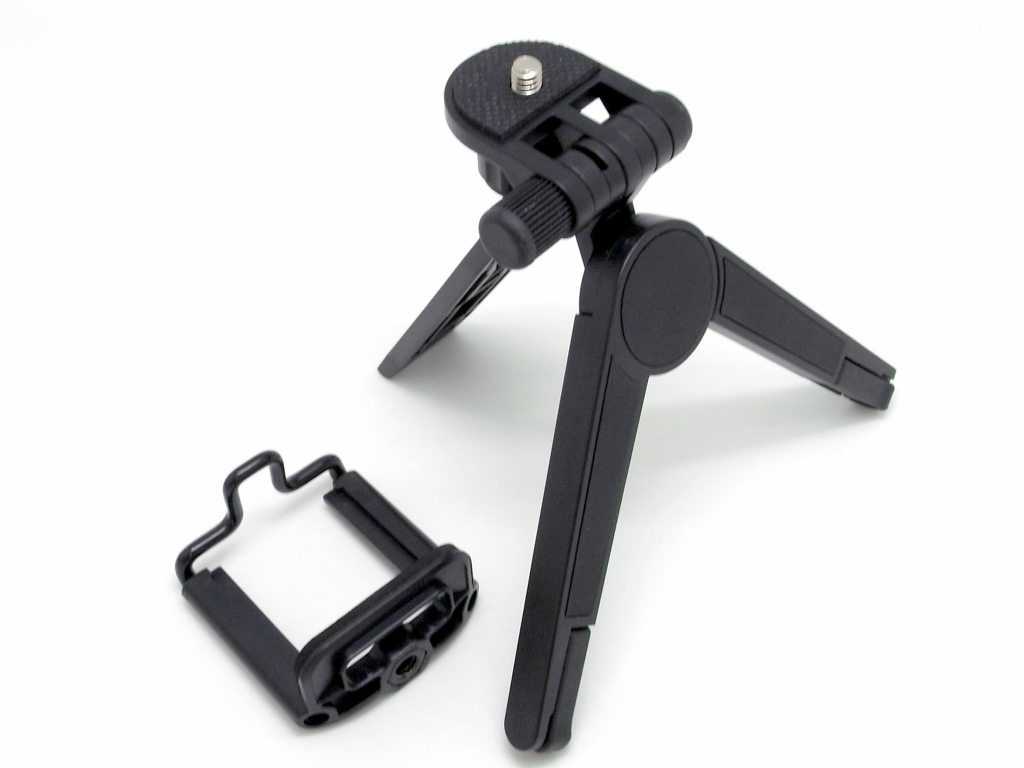 商品内容は、三脚と スマートフォン固定用アダプタ。2つ合わせて約81gと軽量コンパクト。