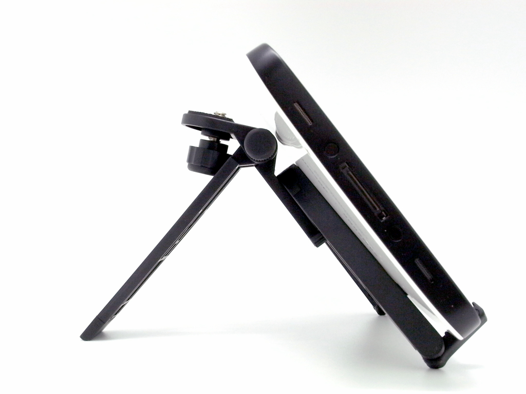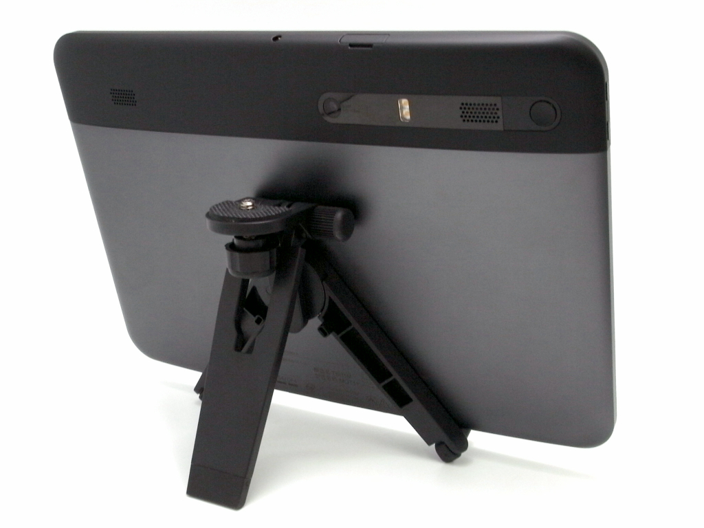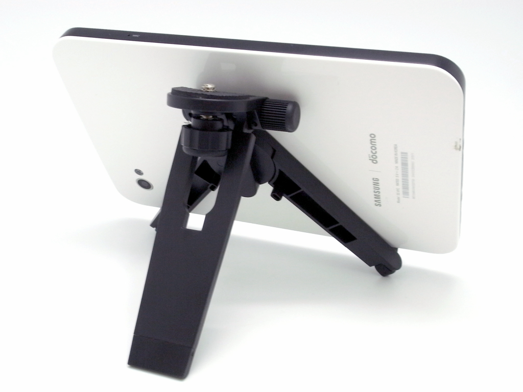 さらに、三脚の足下部分を前に倒すと、タブレットのスタンドとしても使えます。
