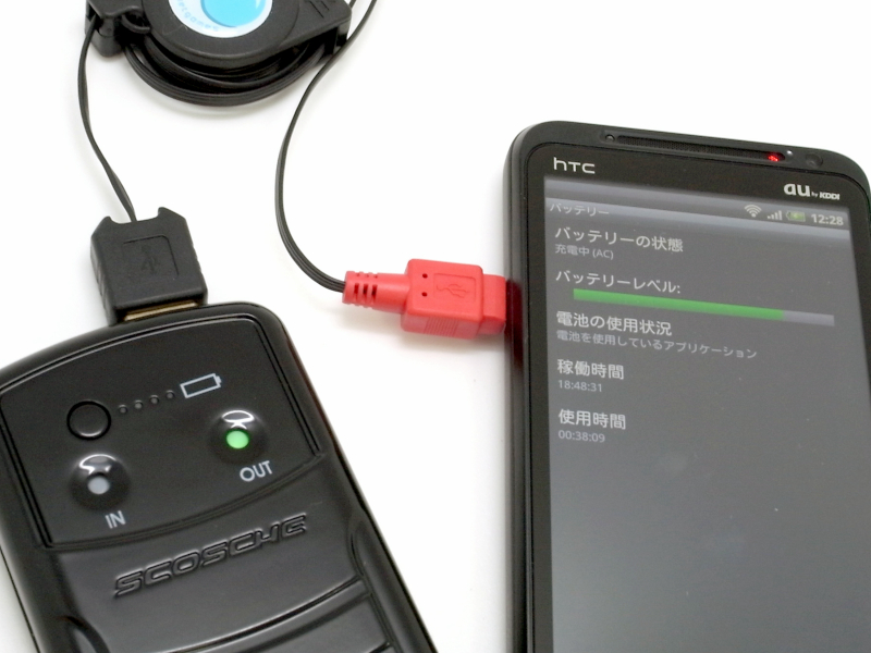 ※1:HTC EVO 3D(ISW12HT)の充電にて、エネループ KBC-L2BとiLuv デュアル USB カーチャージャーと、シンクも可能なケーブルとの間で充電をおこなうと、ほとんどの場合「充電中(USB)」となるが、たまに「充電中(AC)」となった。最初は、カーチャージャーの供給電流の変化で閾値をまたいでいるのかと思っていましたが、エネループ KBC-L2Bでも同じ現象が認められた。もしかすると、エネループ KBC-L2Bがへたってきていて、購入当時のパワーを発揮できていないかもしれません。
