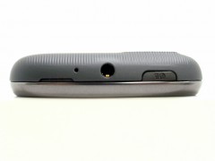 上部には、バッテリカバーを外すための取っ掛かり、よく分からない小さい穴、3.5mmイヤホンジャック、電源ボタン。
