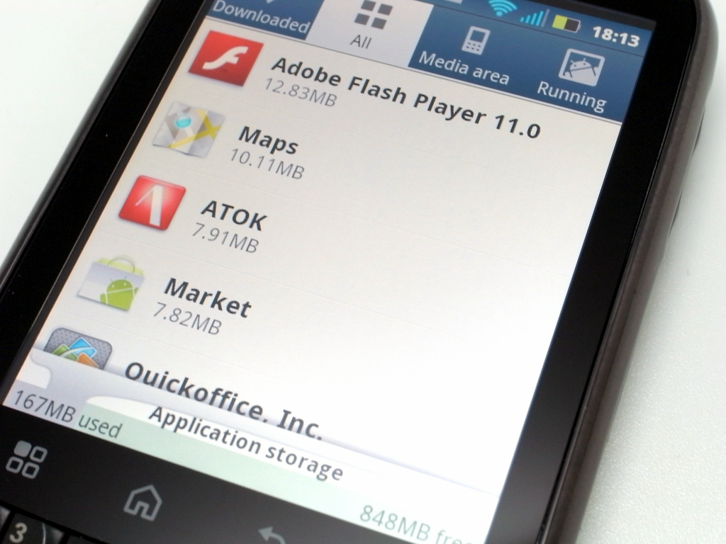 ストレージ空き容量は、ATOK入れて残り848MB。