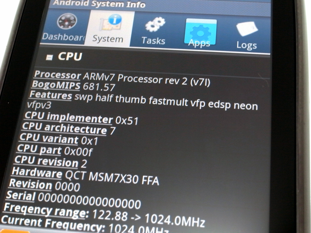 Android System Info(Android マーケット)でCPU情報を見てみた。