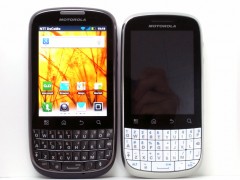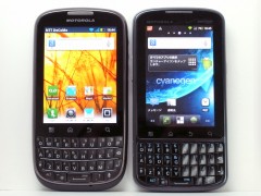 そっくりさん(左)と Droid PRO(右)。スクリーンの縦横比が、そっくりさん 480×640(3:4)、Droid PRO 320×480(2:3)と異なります。解像度が高い分、そっくりさんの方が文字などくっきりはっきりしてます。さくさく感も CM7の Droid PROにひけをとりません。大きさは同じように見えますが、背面のラウンドが大きく、軽い分、そっくりさんの方が持ちやすいです。