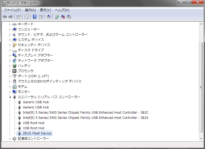 デバイスマネージャに Unkown Deviceが現れたら、s1toolに付属のドライバをインストールして「Flash Device」として認識させ、いったんUSBケーブルを抜きます。