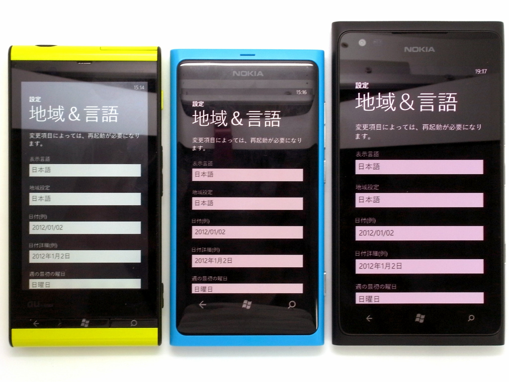 最初は、900の方だけを入手するはずだったんですが、そういえば 800も買ってなかったなと思い出して、両方ほぼ同時に入手してしまいました。 800が香港版で、900がUK版です。大きさ比較として、 IS12T(左)、800(中)、900(右)の3台を並べてみました。IS12Tと800がほぼ同じ大きさで、900がひとまわり大きいです。