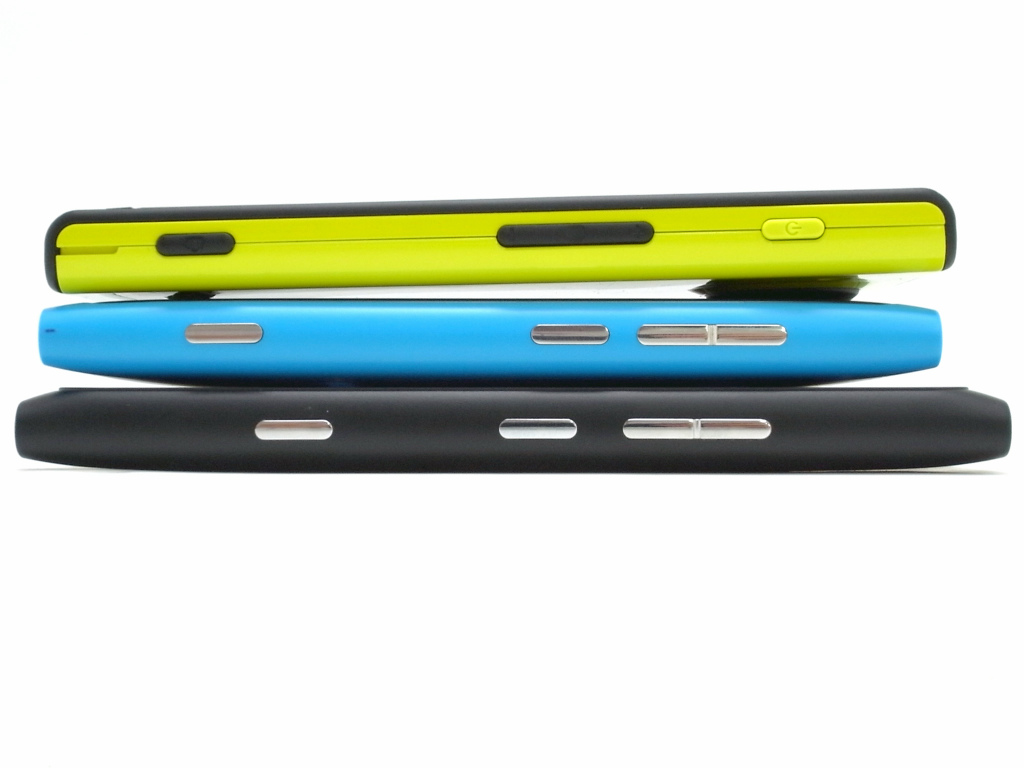 800(中)と900(下)の上側には、SIMカードスロット、microUSB端子、3.5mmイヤホンジャックが並びます。さらに、900(下)には、セカンドマイク穴があります。また、800の SIMカードスロット、microUSB端子は、N9と同じように凝った作りになってます。900の方は、microUSB端子が剥き出しになっていて、充電が楽ですね。個人的には剥き出しの方が好きです。
