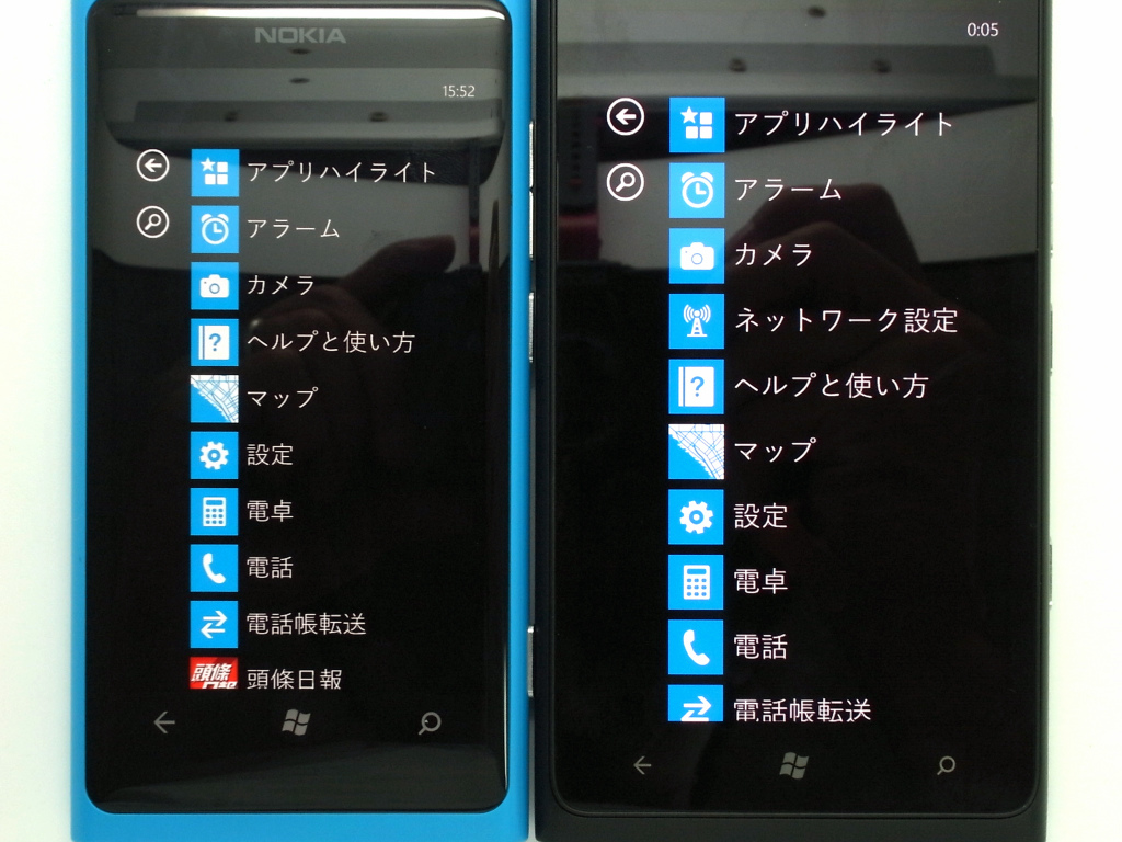 800(左)と 900(右)にプリインされてるアプリ。900には、NOKIAネットワーク設定が最初から入ってました。