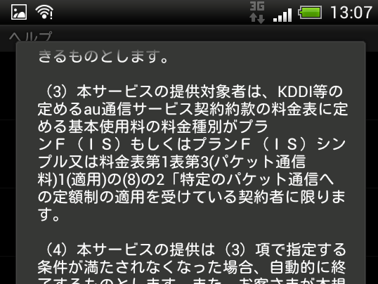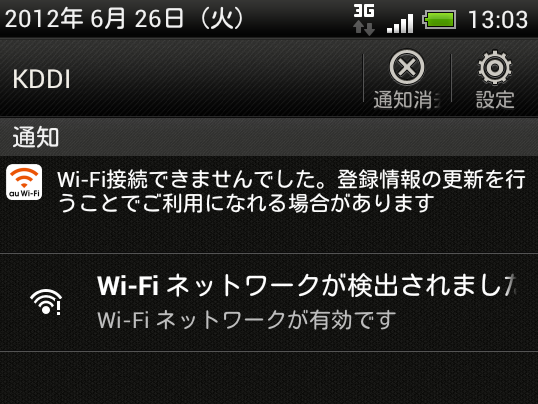 いつも行ってる蕎麦屋にも、昨日行ったラーメン屋にも、一昨日行ったスパゲティー屋にもau Wi-Fi SPOTがあるのですが、今使ってるHTC Jやその前に使っていたGalaxy SII WiMaxも、これに繋がったことはありませんでした。対応プランに入っていないのが原因だとは分かっていたのですが、自分がなんのプランに入っているのかなんて、覚えてませんし。