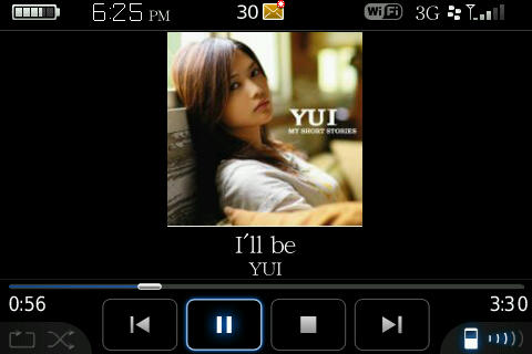 ご存知でしょうか、BalckBerry Bold はスピーカーを3つ搭載しています。電話の時のスピーカーと、あとは液晶左右に1個づつ。そうなんです、ステレオなんですよ。最近のスマートフォンのスピーカーは結構いい音しますが、ボリューム上げても音割れしませんね。私のように一人暮らしのちっこいマンションでは十分な音量と音の広がりです。