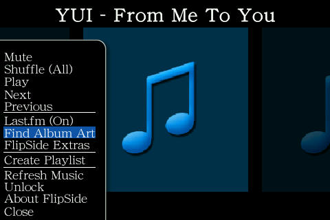 さて、Last.fmクライアントを探していて見つけたFlipSideを試用してみました。Last.fmはご存知の通り、ネットラジオみたいなものですが、好きなジャンル・アーティスト、似た雰囲気の曲などを勝手に選んで24時間流し続けてくれます。FlipSideはMP3プレーヤーとしての一般的な機能に加えて、Scrobbleと言われる機能のみで、残念ながらストリーミング機能はありませんが、アルバムアートが気持よ~くスクロールしてくれます。また、日本語は非対応のようですが、曲名をキーにアルバムアートをネット上から探し出してくれちゃいます。どっから取ってくるのでしょうね。画像はこちら